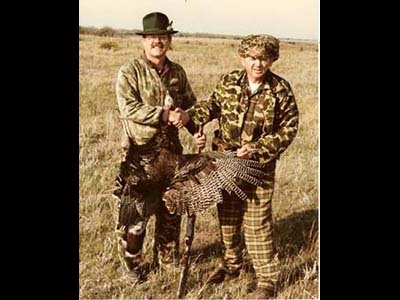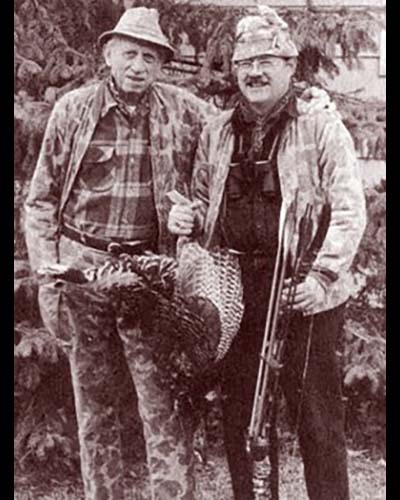 Dick always had his camera ready and he shared some of this best shots, many with Fred and others of the gang witch often included, Gordon Ford, Dr. David Strider, K.K. Knickerbocker, Fred, Bob Kelly, Judd Grindell, Ben Rogers Lee, and sometimes a local bowhunter or two. In that era, 1970's to about 1990, Archery Turkey hunting was finally being accepted. Earlier, many turkey enthusiasts thought the bow and arrow inadequate for turkeys. With stories of our hunts with Ben Lee, and Fred. Bear Archery's special 1979 catalog to turkey hunting, Dick's layout work in using a fine artist, Rod Lawrence, in lieu of actual photos on all pages led the way for acceptance of bowhunting the wild turkey. The inside cover and first pages "Fred Bear Challenges you to try bowhunting the Wild Turkey." On page 8 of the catalog, Dick used a topographic map of our Plum Creek property for background of the compound bows. Dick, Fred, and Kelly sent us a framed print of one of Rod Lawrence's turkey paintings, same format as the catalog. This afternoon that picture caught my eye as it adorns a place on one of the cabin walls. More memories came flooding back to times and event and Dick's, and Fred's first turkeys. Those are special stories I might someday tell.