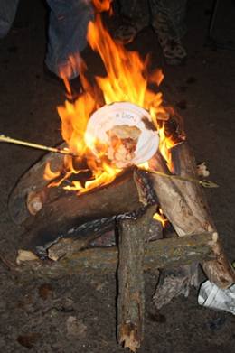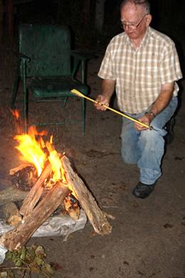 In keeping with our tradition, we planned Glenn's bonfire to burn one of his arrows for Monday evening when we would all be at the Keim Place and the cabin. As you all know, apple pie was one of Glenn's special likes, so Carol baked a Glenn St. Charles apple pie with special apples, the first produced from a new tree in our yard. The first piece of pie was placed on a paper plate on which Carol had written, "Such a Deal". His arrow was tipped with a 4 blade bear razorhead and placed across the fire and pie.