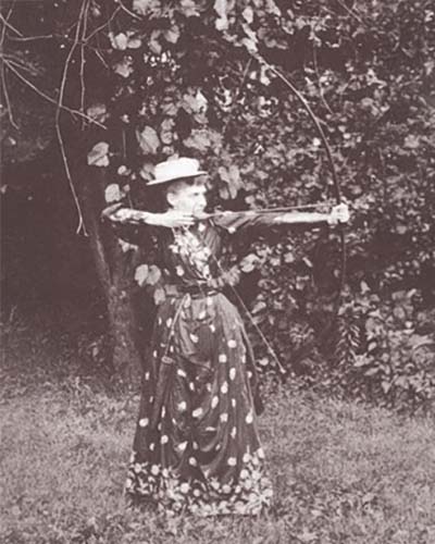 In 1904 a reporter from the Cincinnati Times Star interviewed Mrs. Howell after winning her 15th championship. When asked why she preferred archery over other sports, she replied, “Archery is a picturesque game, the range with its smooth green and distant glowing target with its gold and radiating red, blue, black, and white, the white-garbed players, with graceful big bows and flying arrows, makes a beautiful picture.” The reporter commented that the love of archery with her is surely inborn.